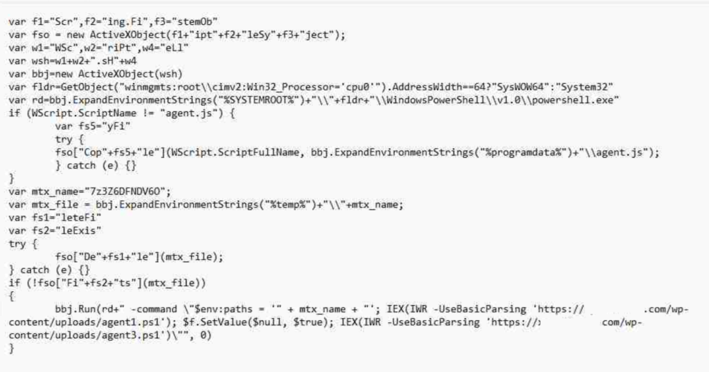 Payload 1 creates ActiveX objects to run PowerShell commands that downloads and executes further scripts.