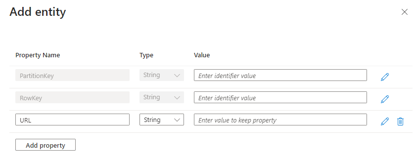 Finally, go to Endpoints in the menu on the storage account, and note the “Table service” endpoint, which should reflect https://storageaccountname.table.core.windows.net/