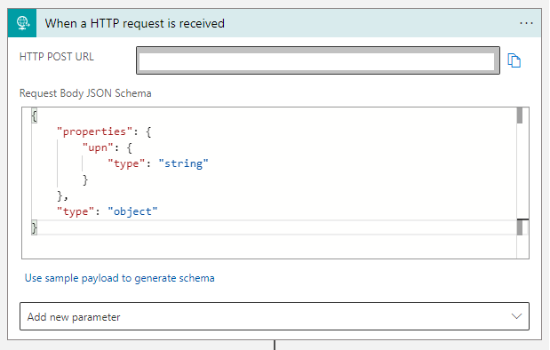 Start the logic app with an HTPP trigger, which we will use in the PowerShell script to requests the data needed to map the folders. You will need to copy this URL in the PowerShell script.